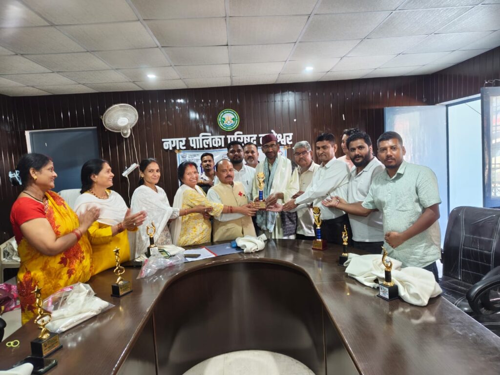 इस अवसर पर नगर क्षेत्र में स्वच्छता कार्यों में उत्कृष्ट योगदान देने वाले जनप्रतिनिधियों, पर्यावरण मित्रों एवं कार्यालय कर्मचारियों को सम्मानित किया गया। उन्हें यह सम्मान निरंतर परिश्रम, समर्पण एवं समाज में स्वच्छता के प्रति जागरूकता फैलाने के उल्लेखनीय प्रयासों के लिए प्रदान किया गया।