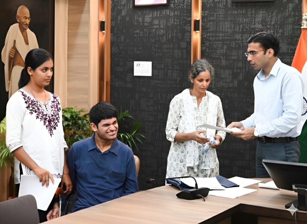 विगत माह अपने शत-प्रतिशत दिव्यांग बेटे व बेटी सहित डीएम से मिल लगाई थी गुहार