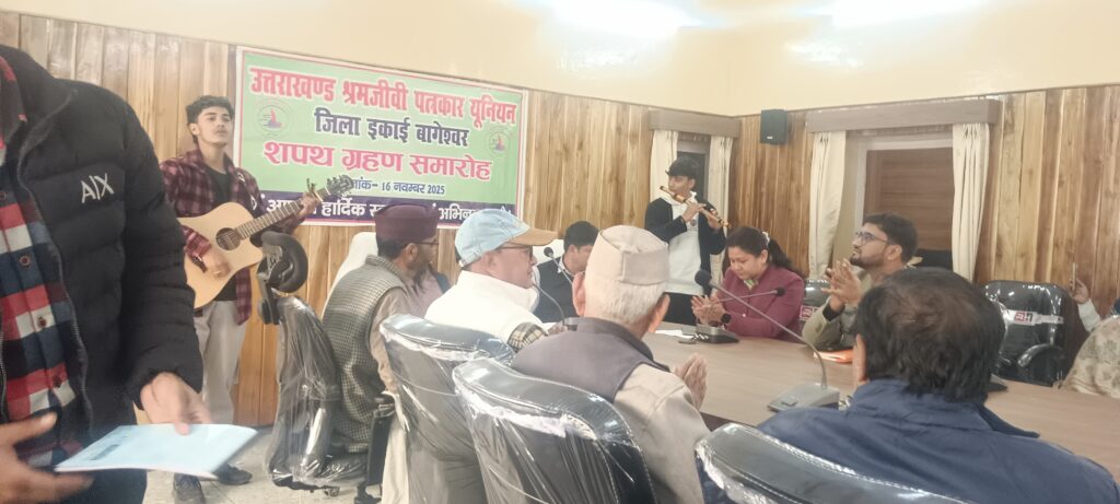 आज अपने शपथ ग्रहण समारोह उत्तराखंड श्रमजीवी पत्रकार यूनियन बागेश्वर में जब युवा गायक अर्जुन गढ़िया ने अपने वासुरी वादक साथी के साथ यह गीत गाया तो शपथ ग्रहण समारोह में जब यह अमर लोकगीत गूंजा, तो वह क्षण केवल एक प्रस्तुति नहीं था—वह अपनी जड़ों, अपनी संस्कृति और अपनी पहचान को नमन करने जैसा था। यही कारण था कि मंचासीन सभी अतिथियों सहित उपजिलाधिकारी तक इसकी धुनों में झूमते देखी गई।