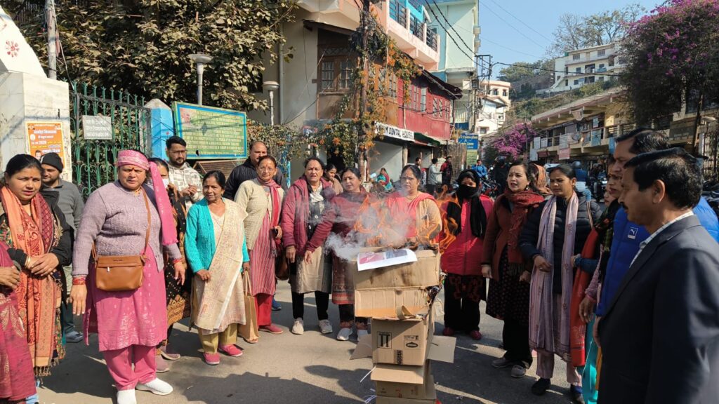 कैबिनेट मंत्री रेखा आर्या के पति के बयान पर महिला कांग्रेस आक्रोशित, किया पुतला दहन