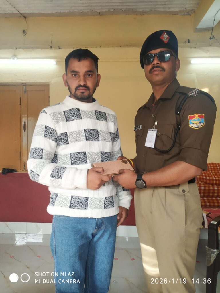 दिनांक 18 जनवरी 2026 को उत्तरायणी मेला क्षेत्र नुमाइशखेत में भारी भीड़ के दौरान मंडलसेरा निवासी श्रीमती सुमन पत्नी श्री दीपक आर्य का पर्स कहीं गिर गया, जिसमें नकदी के साथ आधार कार्ड, पहचान पत्र, एटीएम कार्ड तथा गले में पहनने वाले सोने के दो बहुमूल्य आभूषण रखे हुए थे। घटना की सूचना मिलते ही अस्थायी मेला चौकी नुमाइशखेत पर तैनात पुलिस कर्मियों ने तत्परता से खोज अभियान प्रारंभ किया और अथक प्रयासों के परिणामस्वरूप पर्स को सुरक्षित बरामद कर लिया गया।