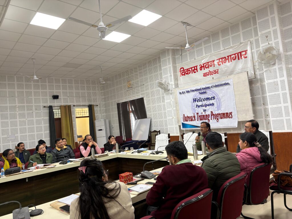 बागेश्वर। प्रशासनिक कार्यप्रणाली को अधिक पारदर्शी, दक्ष एवं उत्तरदायी बनाने की दिशा में एक महत्वपूर्ण पहल करते हुए डॉ. आर.एस. टोलिया उत्तराखंड प्रशासनिक अकादमी, नैनीताल के तत्वावधान में विकास भवन सभागार में जिला स्तरीय अधिकारियों के लिए तीन दिवसीय प्रशिक्षण कार्यक्रम आयोजित किया जा रहा है। यह कार्यक्रम शासन की कार्यसंस्कृति को आधुनिक तकनीकी साधनों से जोड़ने तथा वित्तीय अनुशासन को सुदृढ़ करने के उद्देश्य से आयोजित किया गया है।