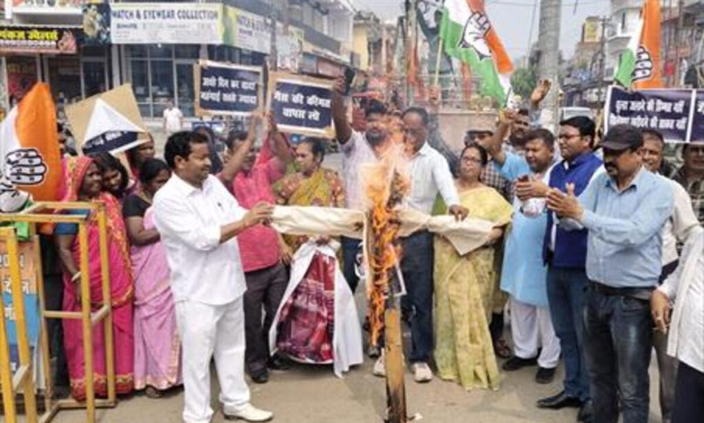 घरेलू गैस सिलेंडर के दाम बढ़ाने के विरोध में कांग्रेस का प्रदर्शन