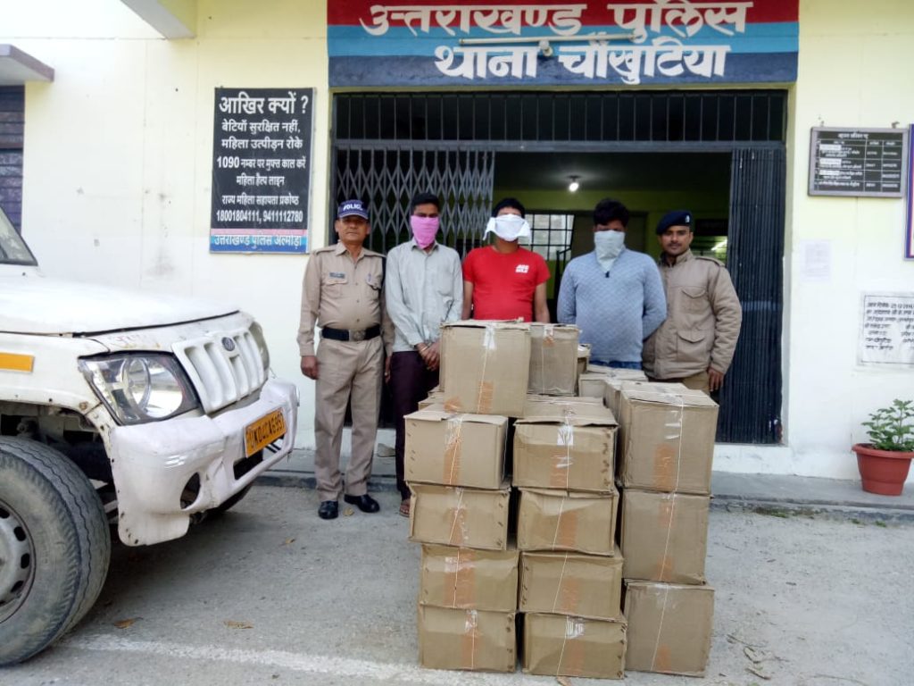 *2- विमल चन्द्र* पुत्र किशन लाल निवासी- दुगालखोला, *3- प्रेमनाथ* पुत्र किशन नाथ निवासी- जैंती लमगड़ा के कब्जे से 17 पेटी बाजपुर गुलाब देशी तथा 33 पेटी देशी मसालेदार शराब *कुल- 50 पेटी शराब (कीमत-1,71,095 रूपये)* बरामद किया गया। थानाध्यक्ष चौखुटिया श्री रमेश बोहरा ने बताया कि शराब की तस्करी कर रहे तीनों अभियुक्तों को गिरफ्तार करते हुए थाना चौखुटिया में मु0अ0सं0- 09/2019 धारा- 60/72 आबकारी अधिनियम के अन्तर्गत अभियोग पंजीकृत कर वैधानिक कार्यवाही की गयी है तथा शराब परिवहन कर रहे *पिकप को सीज* किया गया है।